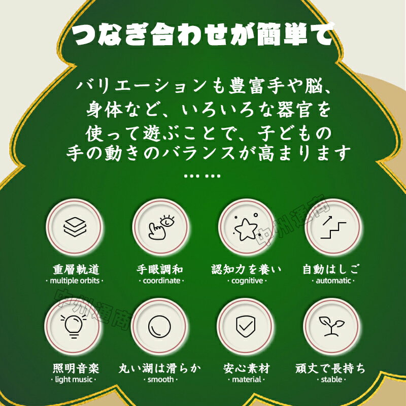 【安全素材】 ABS、環境にやさしい素材で作られたサンタレーストラックのおもちゃは安全で耐久性があります。すべてのパーツは丸く滑らかで、鋭いエッジがなく、子供にとって安全です。 【設置に便利】 商品サイズは25.5 * 14cm / 10.04 * 5.51in程度と大きくなく、分解後どこへでも持ち運べます。それは屋内、庭、ビーチ、そして列に置くことができます。順番に組み立てれば、プレイを開始できます。 【ユニークなデザイン】 教育用音楽スライド玩具には、組み立てが簡単な点滅するLEDライトが付属しています。そして、陽気な音楽(オン/オフボタン付き)のあるかわいい小さなサンタのスライディングトラックが階段にあります。 【赤ちゃんの発達を促進する】 おもしろいトラックと陽気な音楽は、子供たちの視覚的知覚の練習を育て、色の認識を助け、幼児が手と目の協調を発達させるのにも役立ちます。 【パーフェクトギフト】 教育音楽スライドおもちゃは、学校のシーズンの初め、ハロウィーン、誕生日、または子供たちのクリスマスに最適なギフトであり、彼らはそれを受け取ることに興奮しています。