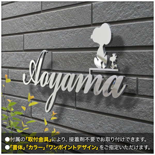 表札 スヌーピー 切り文字 アイアン 取り付け金具付き ピーナッツ PEANUTS 犬デザイン いぬ かわいい ステンレス 筆記体 おしゃれ SPKMIR-SM-N5