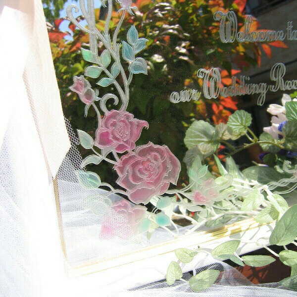 ウェルカムボード【ミラー・大きなバラとアイビー柄がおしゃれ】ブライダル ウエルカムボード ウェディング ウエディング かわいい おしゃれな