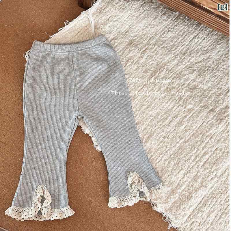 パンツ 女の子 ベビー 乳幼児 女児 韓国風 フリル リブ編み フレアパンツ ブーツカット ストレッチ 伸縮性 綿 コットン 無地 ハイウエスト ロング丈 普段使い お出かけ ルームウェア 秋冬