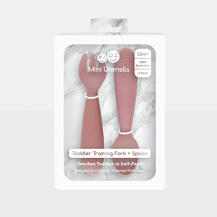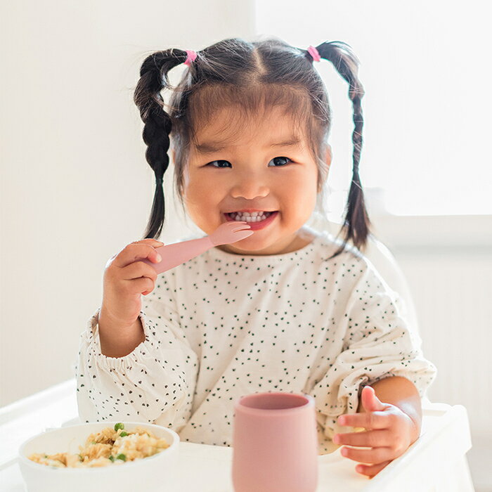ひっくり返らない ベビー食器 離乳食 【正規品】【ラッピング/のし無料】 ezpz イージーピージー ミニ ユーテンシルズ ローズピンク スプーン フォーク ベビー食器 子供用食器 離乳食 食器セット シリコン 出産祝い クリスマス プレゼント ラッピング対応