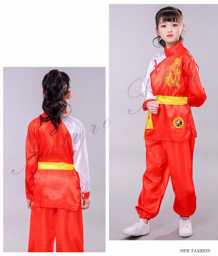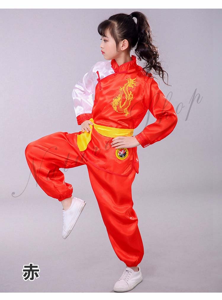 上下二点セット長袖 華流コスプレ舞台演出衣装 気功カンフー衣装 龍柄刺繍 中華服武術服 スポーツ太極拳ウエア 男の子唐装漢服 半袖 子供用太極拳ウェア 女の子