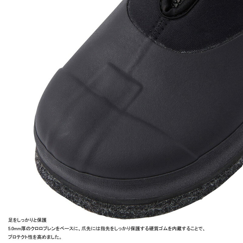 仕様/規格●サイズ:XL●目安足サイズ(cm):27.0~27.5●ソールタイプ:カットフェルト●※修理対応にてソールは交換可能です。サイズXLカラーブラックメーカー品番109033商品説明●直付けソール鮎タビのスタンダードモデル。指先での踏ん張りが効く中割れタイプ●5.0mm厚クロロプレンをベースに、指先部分には硬質ゴムを、そのほかの部分には保護性と運動性を考慮したゴムを貼り付けた鮎タビです。指先での踏ん張入りが効く中割れ、直付ソール、端まで切り込みが入ったカットフェルトが相まって、川底の石の感触を足裏で感じ取り、しっかりとしたグリップ力を得ることができます。またデカソールの採用により安定感もアップしています。排水は、砂利やゴミが入りづらい足裏からの排水構造です。商品属性●カラー:[ ブラック系 ]関連ワード●釣り具 釣具 つり具 鮎釣り 川釣り 渓流ジャンル識別情報:/g1012/g204/g303/m002/※納期表示のご説明はこちら