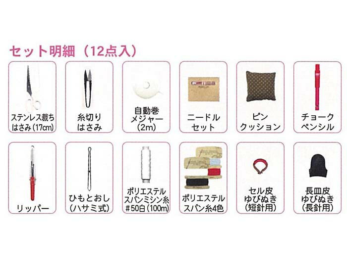 コンパクトなケースにソーイングに必要な道具が入っています。●用途:学校通い向け●サイズ:ケース 124×202×60mm、トレイ 121×197×22mm、パッケージ 124×242×60mm●材質:PP樹脂(ケース、トレイ)※抗菌加工≪関連商品≫●[ソーイングセット] コンパクトタイプ(ベージュ) 7870cd020141