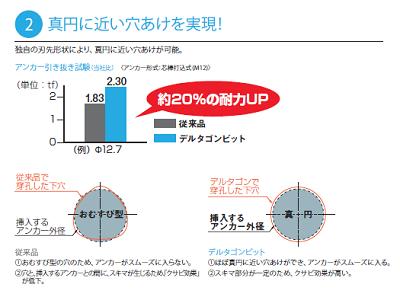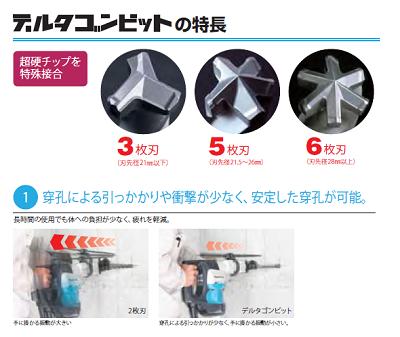 【 発送方法 】 宅配便 60サイズ デルタゴンビットは穿孔による引っ掛かりや衝撃を少なく、安定した穿孔を可能。長時間の使用でも体への負担が少なく疲れを軽減します。高性能で真円に近い穿孔ができます。位置決め性能が向上し、鉄筋接触時の安全性が向上されました。少ない外径摩擦でデッキプレートも貫通できます。 ≪注意!≫ 使用電動機は、振動ドリルで必ず振動モードでご使用ください。インパクトドリル・ドリルドライバーは使用できません。 【 特長 】 ◆真円に近い穴あけが可能 ◆特殊形状により、ビットをガッチリ固定。 ◆位置決め性能向上。 ◆コンクリート釘の下穴に。(Φ2.5/Φ2.8) 【 適合材 】モルタル・ブロック・コンクリート 【 穿孔可能材 】PCコンクリート・レンガ・石材窯業系サイディングボード 【 サイズ一覧 】 デルタゴンビット振動用 SG 刃先径(mm) 品 番 全 長(mm) 有効長(mm) 13.5 DLS135SG 170 120 14.0 DLS140SG 【 サイズ違いもご用意しております 】 Φ2.5/2.8mm Φ3.0〜3.8mm Φ4.0〜4.8mm Φ5.0〜5.5mm Φ6.0〜6.5mm Φ7.0〜7.5mm Φ8.0〜8.5mm Φ9.0〜10.0mm Φ10.5〜11.0mm Φ12.0〜12.5mm Φ12.7〜13.0mm Φ14.3〜14.5mm