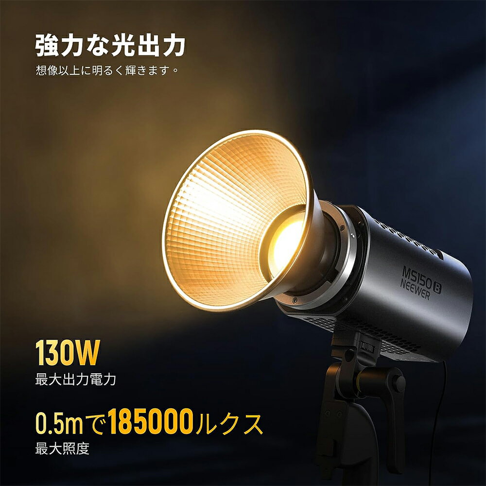 【P10倍UP中!】NEEWER MS150B 130W 二色LEDビデオライト ミニ軽量COBライト 連続照明撮影ライト スタジオライト 定常光ライト 2.4G/APP制御 200000 lux/0.5m 2700K-6500K CRI97+ 12照明効果 Bowensマウント 2電源オプション
