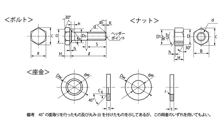 商品画像は白黒のため、実際の商品とは異なります。サイズの表記は「呼び径d(ねじの径)×長さL(図面上のLの長さ)」になります。JANコード:4550574799795材質・表面処理・サイズ・入り数(箱・バラ)違い品一覧はこちらをクリック→六角ハイテンBT(F8T(月盛カテゴリボルト