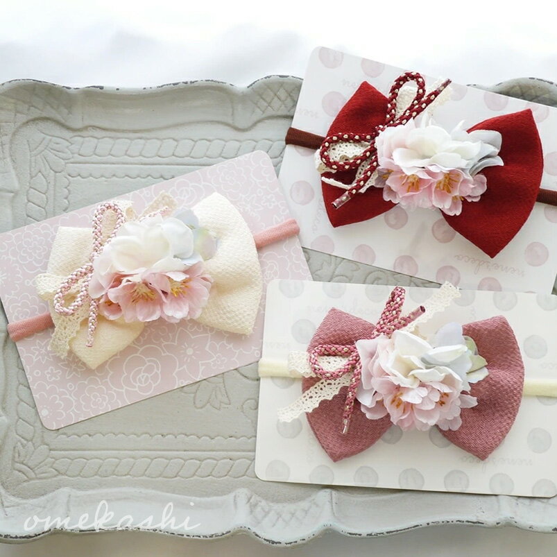 ひなまつり お食い初め 髪飾り 和 浴衣3歳 ヘアバンド ヘアアクセサリー 袴 子供 【組紐りぼん・さくら・コットンレースのちりめんりぼん】 着物 ひなまつり 三歳 七歳 日本製 ヘアクリップ 赤ちゃん お食い初め ピンク 女の子 ベビー キッズ 小学生 ハーフアップ 花 753