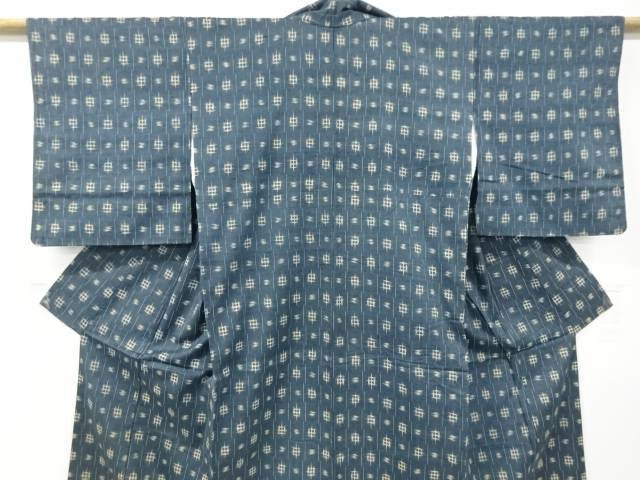 抽象模様織り出し手織り紬着物【アンティーク】【中古】【着】(prc)