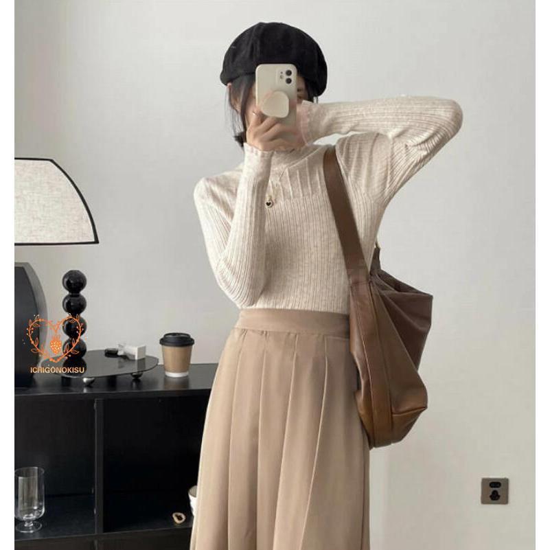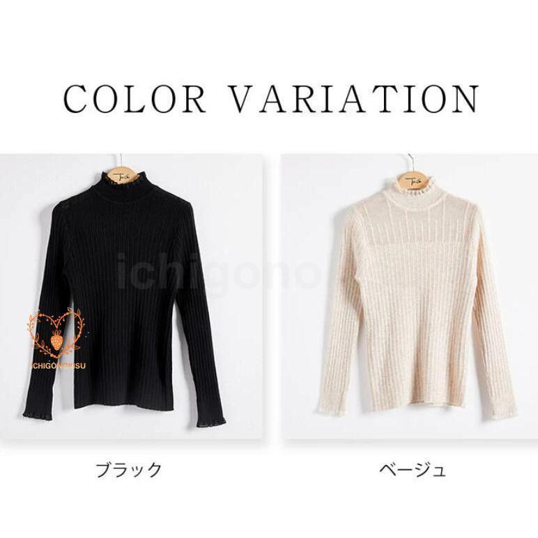 ニットセーター 長袖 レディース インナー 秋冬 プルオーバー ハイネック フリル 大人 可愛い リブニット 透かし編み ニット セーター 着回し 秋 冬 春