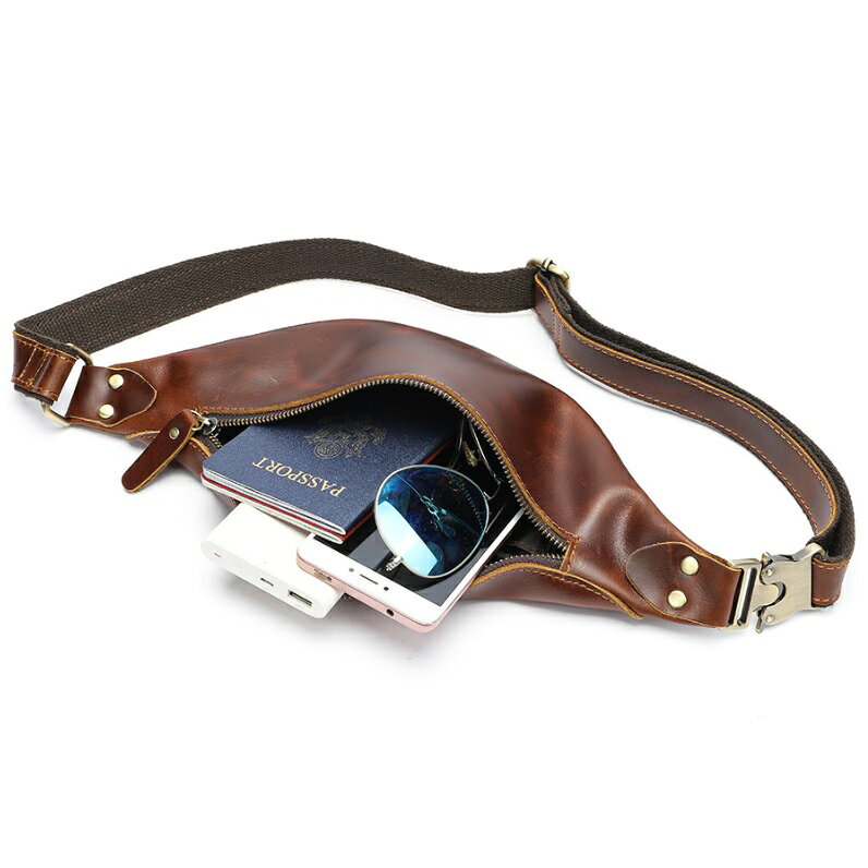 【マラソン当店PT10倍!】 ワンショルダーバッグ メンズ 肩掛けバッグ 斜めがけバッグ 斜め掛けバッグ ヒップバッグ ウエストポーチ ウエストバッグ ボディバッグ 小さめ シンプル 人気 薄型 かっこいい 本革 レザー 軽量 2WAY 3WAY 30代 40代 50代 60代 ワンショルダーバッグ メンズ 肩掛けバッグ 斜めがけバッグ 斜め掛けバッグ ウエストポーチ ウエストバッグ ボディバッグ 小さめ 人気 薄型 かっこいい 本革 レザー 軽量 2WAY 3WAY 【本革の上質感と大容量の便利さ】高級感あふれる本革を使用したショルダーバッグ・ボディバッグ・ヒップバッグ・ウエストポーチ。丈夫で耐久性があり、使い込むほどに味わい深い風合いと経年変化を楽しめます。スマホ、財布、鍵、小さな本(文庫本)などの必需品を収納できる設計で、通勤・通学から旅行やアウトドアシーンまで幅広く活躍します。【シンプルでおしゃれ 2WAY3WAYデザイン】2WAY3WAYな設計で、使いやすさ抜群。利き腕に合せて快適に使用できます。肩や体に合わせたフィット感で快適な着用感を実現しました。クロスボディとしてもワンショルダーとしても使用可能。ウエストにかけてウエストポーチやウエストバッグとして。 シンプル&おしゃれなデザインは、カジュアルからビジネスまで幅広いシーンにマッチ。プレゼントにも最適です。【内ポケット&ファスナーで安全性】内側にポケットを配置し、スマホやお財布などの貴重品をしっかりと保管。ファスナー付きでしっかりと収納。【幅広いシーンで活躍】デイリーユース、通勤通学、旅行、アウトドア、サイクリングなど、さまざまなシーンに対応します。本革の風合いを生かした高品質なボディバッグは、1年保証がついております(お客様側のご使用での破損等は除きます)。プレゼントやギフトにも。対象年齢は、10代20代30代40代50代60代70代80代と幅広く喜ばれます。【ご購入前にご注意頂きたいこと】このミニショルダーバックは天然素材を使用しているため、色や風合いが多少異なる場合があります。デリケートな本革製品の為、色むらがあったり輸送中に傷がついたりすることがあります。水濡れや摩擦により、色落ちやシミが発生する場合があります。これらはデリケートな革製品の特性や個性でもあり、ご理解頂いた場合のみご購入頂けると幸いです。 5