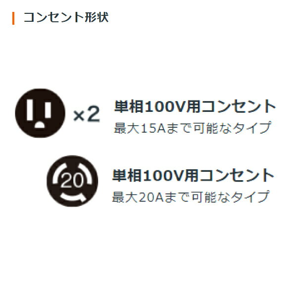 ホンダ EX22 サイクロコンバーター搭載発電機 車輪なし[EX22K1JNA2]大型燃料タンクを搭載、低騒音フルカバーモデル。夜間作業にも対応する二重防音構造のフルカバー防音設計。大型燃料タンクによって約8.4hの長時間運転を可能にします。電動工具などモーター使用機器に最適。50/60Hzが切り替えられるサイクロコンバーター搭載発電機。使いやすさ・高出力なモーター使用機器にも使える出力2.2kVA。・一人での移動も楽に行えるホイールタイプ(EX22K1JNA3)も用意。品質・信頼性・信頼のHondaエンジンを搭載。長年の実績に裏付けされた耐久性。・エンジンの焼き付きを防止するオイルアラートを搭載。・容量を超えた過電流が続くと電気出力を停止し、発電機を保護するブレーカー機能。環境・燃費性能・フルカバーで気軽に使える低騒音を実現。・大型燃料タンクの搭載で、最大連続運転時間8.4時間を実現。■大きな安心、Hondaの「ホッ!」Honda発電機をご購入いただくと、『賠償責任保険(施設所有管理者特約)』が1年間、付いてきます。 タイプ区分: JNA2●寸法・重量 【全長×全幅×全高(mm)】658×447×558【乾燥質量(kg)】50.4●発電性能 【発電部型式】多極界磁回転型 【電圧調整方式】サイリスタ位相制御 【相数】単相 【電力変換方式】サイクロコンバーター 【周波数(Hz)】50/60【定格出力(kVA)】2.2 【交流】電圧(V)100、電流(A)22【連続運転可能時間(h)】約8.4●エンジン性能【名称】GX160T2【種類】空冷4ストローク単気筒OHV 【総排気量(立方センチメートル)】163【燃料の種類】自動車用無鉛ガソリン 【有効燃料タンク容量(L)】12.7【潤滑油容量(L)】0.53【始動方式】リコイルスターター(手動)●騒音レベル 【LWA 定格負荷(dB)】90 【LWA 3/4負荷(dB)】89●適合規格:国交省超低騒音型 ※世界基準の音響パワーレベルLWAで表記しています。 測定基準はISO03744に準ずる試験環境での測定となります。 【搭載機能・装備】▼周波数切替機能発電する電気の周波数がスイッチ1つで簡単に切り替えられ、50/60Hzどちらの地域でも使えます。また、50Hz時も出力が低下することなく、60Hz時と同一出力の取り出しが可能です。▼フルカバー防音Honda独自の二重防音構造で高い静粛性を実現。音の一番の発生源であるエンジンを防音箱で覆い、さらに外側を覆う防音壁が内部の音の漏れを防ぎます。▼クイックメンテカバー本体のメンテナンスカバーはコインでも開閉が可能。取り付けネジが1箇所なので手間なく、点検作業に取り掛かれます。▼LED表示機能LEDランプの表示によって発電機の状態を確認できます。インバーターシリーズでは累積運転時間の確認や故障診断が行えます。▼ブレーカー機能容量を超えた過電流が続くと電気出力を停止し発電機を保護します。インバーターシリーズでは電子ブレーカーを搭載しています。▼オイルアラート運転中にオイル量が規定レベル以下になると、自動的にエンジンが停止。オイルアラート エンジンオイル量不足によるエンジンの焼きつきトラブルを未然に防ぎます。▼ガソリン燃料ガソリンスタンドで入手できる自動車用の無鉛レギュラーガソリンで電気を作り出します。▼キャブレターガソリンを空気と混合する気化装置。発電機を長期間運転しない場合は、キャブレター内でガソリンが劣化し故障の原因になるため、ガソリンを抜いて保管する必要があります。当店では、オイル充填・試運転は無料サービスで実施しています。届いてすぐに使える!とたいへんご好評をいただいております。※※発電機を使用する際の注意事項※※・屋内では絶対に使用しないでください。・屋外でも換気の悪い場所では絶対に使用しないでください。 発電機の使用中に出る排気ガスには有害な一酸化炭素が多く含まれており、一酸化炭素中毒を引き起こす恐れがあるため大変危険です。・ご使用前に取扱い説明書と保証書をよくお読みください。・精密機器への使用に関しては、エンジンノイズの影響の無い距離および他の電気製品との干渉が無い事を確認の上ご使用願います。また使用する機器によっては発電機の特性があわず、不具合が発生することがあります。・転倒しないような場所を選んでご使用、収納してください。※本仕様は予告なく変更する場合があります。※写真は実際の色と多少異なる場合があります。【kk9n0d18p】2020/11/17[ パワーツール 林業用品 ホンダ HONDA 発電機 非インバーター サイクロコンバーター 防災 アウトドア 家庭用 業務用 非常用電源 ポータブル電源 防音 災害対策 試運転済 ] 適格請求書発行事業者