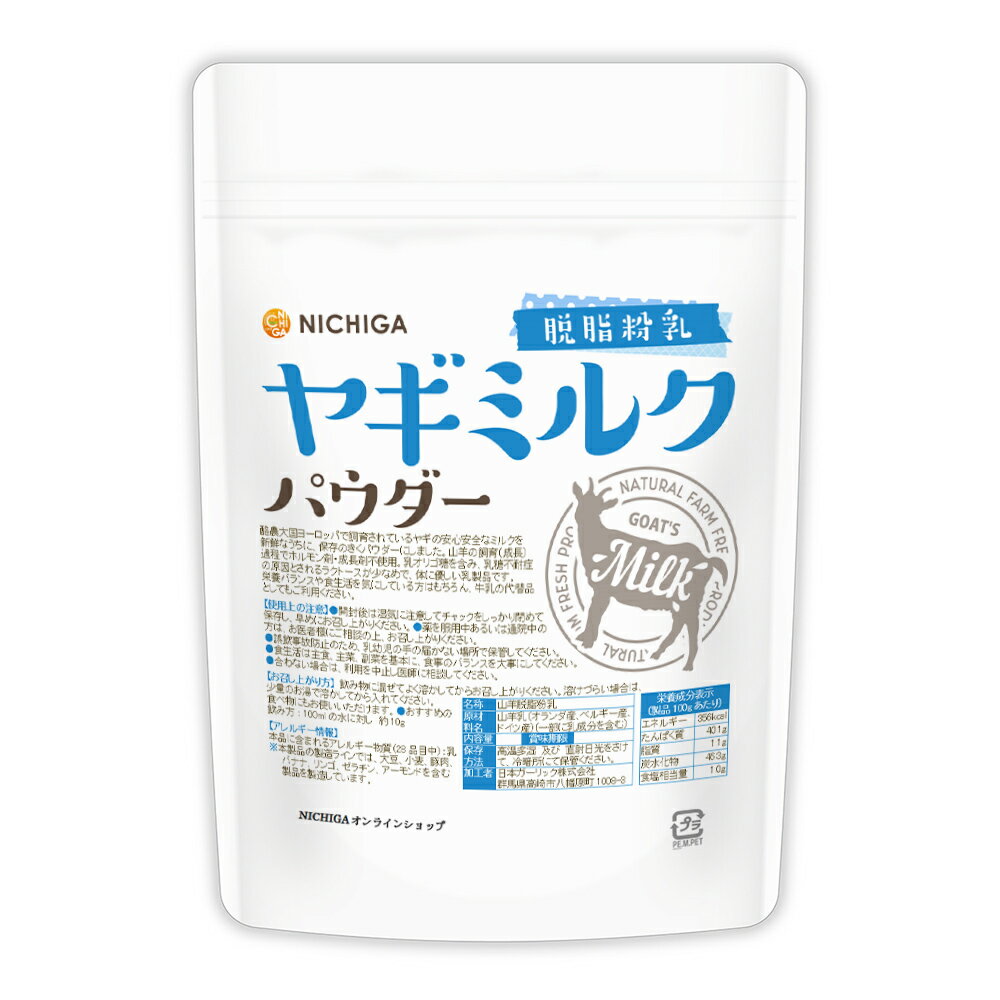 サイズ違いはこちら 150g メール便 150g※在庫についての注意事項 当商品は自社販売と在庫を共有しております。 在庫更新のタイミングによっては在庫切れとなってしまい、やむを得ず注文をキャンセルさせて頂く可能性がございます。予めご了承下さい。 ※ご注意 メール便はポスト投函(商品をポストに投函)となる為、配達日時の指定、代金引換決済はご利用いただけません。 ★ 計量スプーンもご一緒にいかがですか? ★ ニチガのサプリメント・食品・エコ洗剤の計量にお使い頂けるスプーンも販売しております。 スプーンのページはこちらです。 商品名 ヤギミルクパウダー 脱脂粉乳 名 称 山羊脱脂粉乳 原材料名 山羊乳(オランダ産、ベルギー産、ドイツ産)(一部に乳成分を含む) 内容量 150g 賞味期限 別途商品に記載 保存方法 高温多湿及び直射日光をさけて、冷暗所にて保管ください。 加工者 日本ガーリック株式会社群馬県高崎市八幡原町1008-3 形 状 粉末 使用上の注意 ○開封後は湿気に注意してチャックをしっかり閉めて保存し、早めにお召し上がりください。 ○薬を服用中あるいは通院中の方は、お医者様にご相談の上、お召し上がりください。 ○誤飲事故防止のため、乳幼児の手の届かない場所で保管してください。 ○食生活は主食、主菜、副菜を基本に、食事のバランスを大事にしてください。 ○合わない場合は、利用を中止し医師に相談してください。 お召し上がり方 飲み物に混ぜてよく溶かしてからお召し上がりください。溶けづらい場合は、少量のお湯で溶かしてから入れて下さい。食べ物にもお使いいただけます。 おすすめの飲み方:100mlの水に対し約10g アレルギー情報 本品に含まれるアレルギー物質(28品目中):乳 ※本製品の製造ラインでは、大豆、小麦、豚肉、バナナ、リンゴ、ゼラチン、アーモンドを含む製品を製造しています。 ■【栄養成分表示(製品100gあたり)】 エネルギー 356kcal たんぱく質 40.1g 脂質 1.1g 炭水化物 46.3g 食塩相当量 1.0g カルシウム 1250mg カリウム 2350mg マグネシウム 165mg ビタミンA 21.0μg ビタミンB12 0.5μg 原材料名(加工地) 原 料 原料産地 脱脂粉乳(オランダ) 山羊乳100% オランダ、ベルギー、ドイツ 【ヤギミルク パウダー 脱脂粉乳 Goat Milk 高タンパク 低脂質 無添加・無着色】 酪農大国ヨーロッパで飼育されているヤギの安心安全なミルクを新鮮なうちに、保存のきくパウダーにしました。山羊の飼育(成長)過程でホルモン剤・成長剤不使用。 乳オリゴ糖を含み、乳糖不耐症の原因とされるラクトースが少なめで、体に優しい乳製品です。 くせがないと言われている品種ザーネンの山羊乳を使用しております。カルシウム・マグネシウム・カリウム、亜鉛を豊富に含んでおり、毎日の健康をサポートします。 栄養バランスや食生活を気にしている方はもちろん、牛乳の代替品としてもご利用ください。