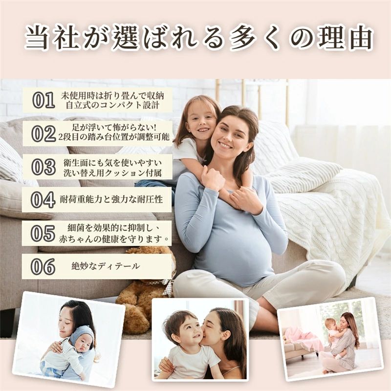 商品詳細 サイズ:38cm*35cm*66cm(詳細は下記のサイズ表をご覧ください) ?象年?:1~10歳 ?象:男女兼用 重量:2000g 耐荷重:75kg 材質:食用グレ-ドPP 【新登場アップグレード版】グレードアップした『子供用補助便座』が新登場!!ペダルの高さは2段階で調節できるので、お子様の成長に合わせて最適な高さに調節できます。従来品よりステップの幅が広くなり、足を乗せた時の安定性が向上し、乗り降りが楽になりました。 【安心?安全な設計】左右につかみやすい持ち手設計でお子様の小さな手にも握り易くて安全です。便座と床との接触部分には滑り止めゴムが付いており、踏み面は滑り止め付きで安定して使用でき、滑る心配がなく安定してご使用いただけます。 【高品質PUクッション?取り外す可能】座面は、クッション性の高いPU素材なので、通気性?心地良くて子供の肌の負担になりません。汚れしても、取り外して、濡れ雑巾やウェットティッシュなどで拭くだけで、清潔を保ちます。 【多数の便器に対応可能】一般的に普及しているのO型とU型とスマートトイレ、ほとんどの便器に対応できます。取り付け可能な大人用の便座は高さ39.2〜44cmです。仕様改善で、立体的な便座にも適用できるようになりました! ※スマートトイレなら高さにより便座を上げて設置しなければいけない場合もあります。 【 組み立て?収納簡単】使わない時にはコンパクトに折りたたんでスリムにできるため、トイレの隙間に置いて、必要な時に広げて使用可能です。日本語説明書付きで女性でも一人ですぐ組み立てられます。メーカー希望小売価格はメーカーサイトに基づいて掲載しています