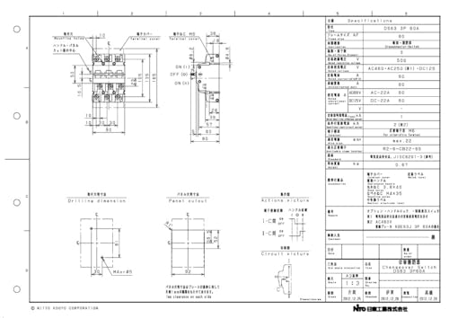 60A-/-/DS633P60A・パッケージ個数:1・極数:3P・注意写真は寸法違い又は定格電流違いの商品の代表例を掲載しています。・定格電流 :60A商用電源・非常用電源の切替および モータ負荷の切替を行うブレーカ形状の切替開閉器です。