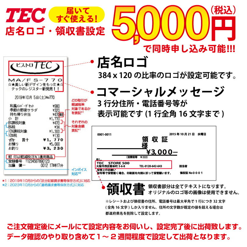 特典 お試し用レジロール 10巻サービス! 保証 メーカー1年保証 使用ロール紙 感熱(サーマル)紙 2シートレジスター 特徴 部門数:10 PLU登録数:10000 担当者数:10 店名表示:作成可 領収書発行:ヨコ型 表示器搭載:ポップアップ 軽減税率・インボイス対応可 クレジット/電子マネー端末連動可能、QRコード決済は連動不可 SDカードで売上管理やスマホ・タブレットとの連携 別売のスキャナに対応メニューシートに63個×2面。合計124アイテム登録可 ※返品について TEC 電子レジスター FS-700 10部門 小型ドロワー レジスター(飲食店向け) 部門ボタンが5個使用可能です。売上を分類するだけなら40部門まで増設可能です。 (部門ボタン増設する場合はPLUキーを使用して部門ボタンを増設可能です。) 信頼と実績あるテック デザインと機能性を追求したNEWスタンダードレジスター 通常のSDカードでも売上データの保存可能♪ 【検索用ワード】FS-700 レジ 業務用 本体 キャッシャー コンパクトレジスター トップジャパン 電子 電子レジスター 店舗レジ 現金レジ 黒 小型 店舗 レジスタ キャッシュドロア カフェ 喫茶店 レストラン 居酒屋 ダイニングバー ラーメン店 蕎麦 うどん店 寿司屋 焼肉店 中華料理店 イタリアン フレンチ パン屋 ケーキ屋 スイーツ専門店 キッチンカー 弁当屋 惣菜店 コーヒースタンド スナック バー ラウンジ クラブ※返品について