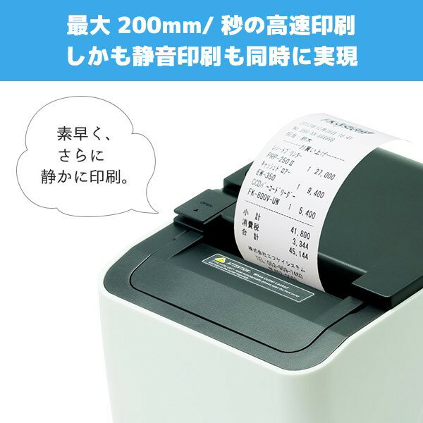 ※返品についてFKsystem オートカッター機能付き サーマルレシートプリンター PRP-250II(USB/RS-232C/有線LAN)全接続対応 ■最大200mm/秒の高速かつ静音印刷を実現 ■オートカッター機能搭載(パーシャルカット) ■幅58~80mm、外径83mm ロール紙※対応 ■マルチなインターフェイス(USB・RS232C・有線LAN) ■ESC/POSコマンド対応 ※最大有効印字幅:72mm PRP-250シリーズはサーマルレシートプリンターの中でも群を抜いたロープライスが魅力。最大200mm/秒の高速印刷なのに、印刷音が静かです。オートカッター機能も標準搭載しております。 前モデル PRP-250 から新しくモデルチェンジ。上部ハウジング部分が光沢ブラックからマットブラックに変わり、指紋がつきにくく汚れも目立ちにくくなりました。 80mm幅ロール紙に加え、58mmロール紙にも対応しています。 型番 PRP-250II JANコード 4580298764328 カラー ブラック×ホワイト インターフェース USB 2.0準拠(12Mbps)(TypeB)RS-232Cシリアル(D-Sub9Pin メス)有線LAN(RJ-45) 印刷方法 サーマルライン 印刷速度 200mm/sec 印字解像度 576dots/line または 512dots/line フォント ANK Font,Font A:12×24 dotsFont B:9×17 dots 有効印字幅 72mm 用紙幅 58mm/80mm(仕切り板にて切り替え可能) ロール紙の直径 83mm 用紙の厚さ 0.06~0.08mm ドライバー Windows 2000 / XP / 2003 / Vista / 7 / 8 / 8.1 / 10 インターフェースコマンド ESC/POSコマンド オートカッター パーシャルカット 紙切れサイン LED&ブザー オーバーヒート防止サイン LED キャッシュドロア ドロワーキックタイプ(DKD) RJ-11モジュラー 電源入力 24VDC/2.0A 動作温度/湿度 0℃~45℃ / 10%~80%(結露なきこと) 保存温度/湿度 -10℃~60℃ / 10%~90%(結露なきこと) 本体重量 1400g(ケーブル除く) 外形寸法 (D) 183.5mm × (W) 140mm × (H) 126mm コンプライアンス FCC / CE / WEEE /RoHS メーカー保証 1年間 【検索用ワード】Fksystem バーコードレーザスキャナ バーコードスキャナー パソコン周辺機器 オフィス 事務用品