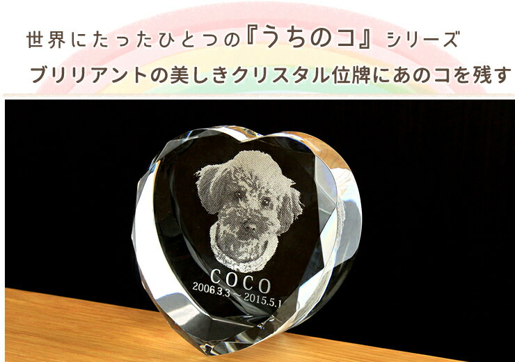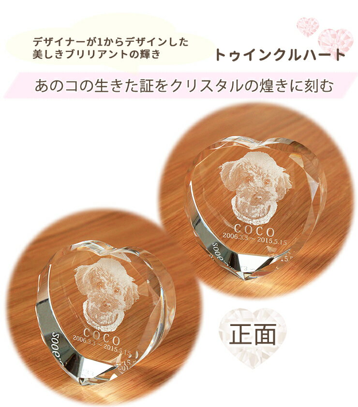 【クーポン有】 クリスタル ペット 位牌 カットの美しいクリスタル位牌『トゥインクルハート』透明 きらきら ペット供養 サンドブラスト きれい かわいい 写真立 フォトフレーム ペット位牌 形見 メモリアル キラキラ