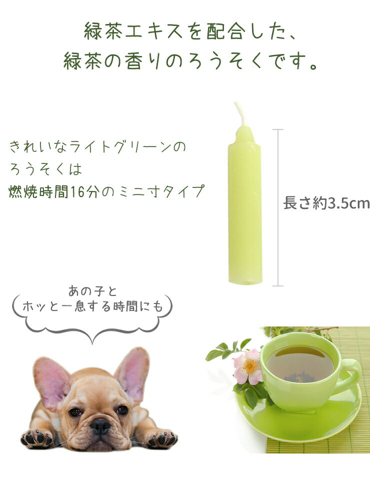 ペット ろうそく GREEN TEA ローソク ペット仏具 茶葉の香りのロウソク グリーンのかわいい蝋燭ペット仏壇 線香 ろうそく 可愛い お供え お悔み 短い ローソク かわいい 供養 お盆 お彼岸 命日 虹の架け橋kobe