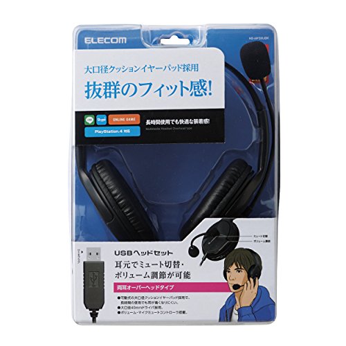 エレコム ヘッドセット マイク USB 両耳 オーバーヘッド 片出しケーブル 1.8m HSHP28UBK