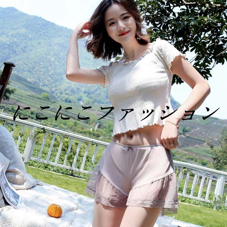インナーパンツ レース ペチパンツ レディース ショートパンツ インナー 見せパン キュロット フレアパンツ 三分丈 チラ見せ防止 ストレッチ ウエストゴム 美ライン ルームウェア 楽ちん ボトムス お洒落 キュート 大人可愛い 春新作