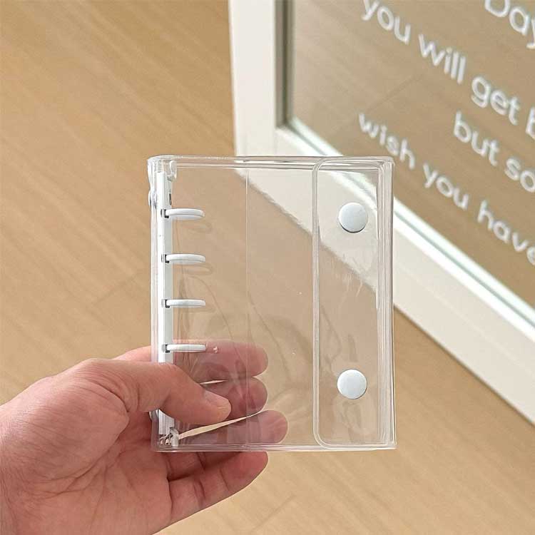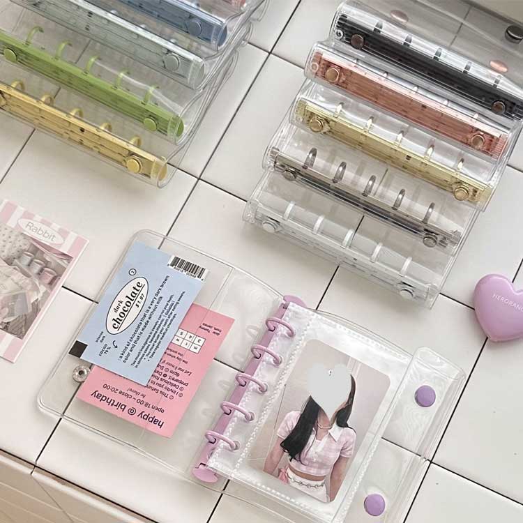 【自分だけの“見せる”シール帳】透明バインダーとクリアスリーブで、シールをそのまま“見せる収納”に。コレクションを保護するだけでなく、可愛く飾る楽しさも満喫!女の子の「好き」が詰まった、自分だけの一冊が作れます【使いやすいM5サイズ&5穴バインダー】手のひらに収まるM5(マイクロ5)サイズで、持ち運びラクラク。小さなバッグにもすっぽり入るから、通学やお出かけのお供にもぴったり。5穴式でリフィルの入れ替えも簡単、自分好みにカスタマイズ【すぐ使える透明スリーブ10枚付き】初めての方でも安心の、透明リフィル10枚入り。大切なシールを綺麗に保管しつつ、出し入れもスムーズ。片面には立体シールを収納し、もう片面にはテーマを変えてデコやコレクションを楽しめるのも嬉しいポイントです【軽くて丈夫なPVC素材】柔らかくて耐水性のあるPVC素材を採用。雨の日やバッグの中でも汚れにくく、毎日持ち歩いても安心。しっかり留まるボタン付きで、移動中に勝手に開く心配もありません【アレンジ自在で使い方いろいろ】シール収納だけじゃなく、日記・スケジュール帳・旅の思い出アルバムとしても大活躍。透明表紙を活かして「表紙デコ」も楽しめるので、世界にひとつだけのオリジナルブックを作ってみ サイズ リフィル(透明10枚) リフィル(オーロラ10枚) リフィル(ハート10枚) リフィル(星柄10枚) リフィル(花柄10枚) サイズについての説明 手帳:10.8x12.7cm リフィル:8x10.8cm ※サイズ計測には誤差が生じます。 素材 PVC 色 ホワイト ブラック ピンク パープル ブルー1 ブルー2 シルバー イエロー グリーン ゴールド ローズゴールド 備考 ●サイズ詳細等の測り方はスタッフ間で統一、徹底はしておりますが、実寸は商品によって若干の誤差(1cm〜3cm )がある場合がございますので、予めご了承ください。 ●製造ロットにより、細部形状の違いや、同色でも色味に多少の誤差が生じます。 ●パッケージは改良のため予告なく仕様を変更する場合があります。 ▼商品の色は、撮影時の光や、お客様のモニターの色具合などにより、実際の商品と異なる場合がございます。あらかじめ、ご了承ください。 ▼生地の特性上、やや匂いが強く感じられるものもございます。数日のご使用や陰干しなどで気になる匂いはほとんど感じられなくなります。 ▼同じ商品でも生産時期により形やサイズ、カラーに多少の誤差が生じる場合もございます。 ▼他店舗でも在庫を共有して販売をしている為、受注後欠品となる場合もございます。予め、ご了承お願い申し上げます。 ▼出荷前に全て検品を行っておりますが、万が一商品に不具合があった場合は、お問い合わせフォームまたはメールよりご連絡頂けます様お願い申し上げます。速やかに対応致しますのでご安心ください。