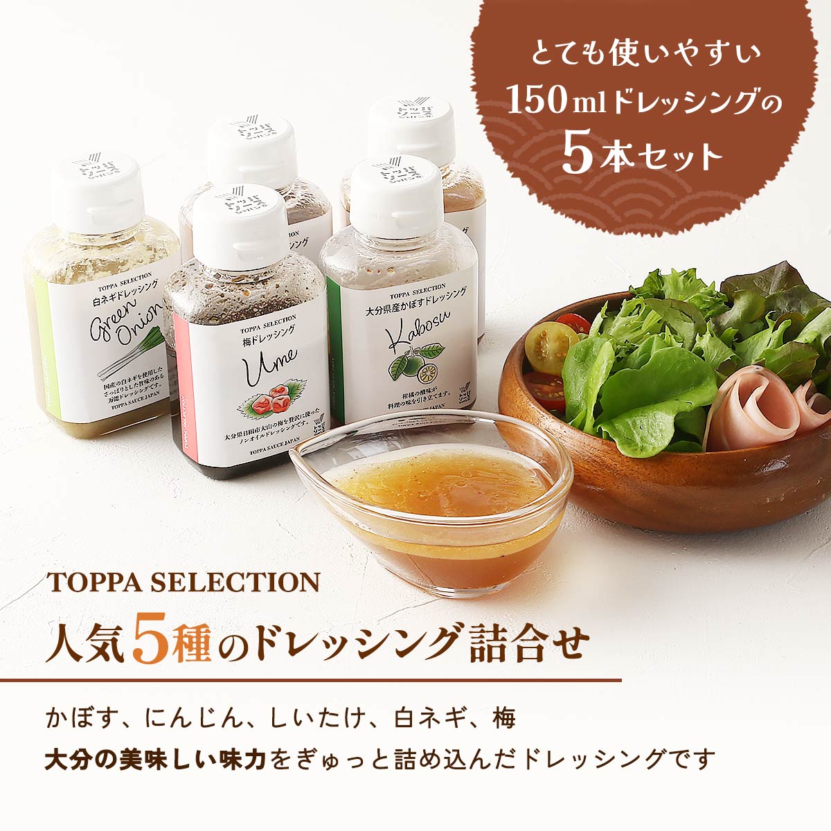 [トッパソースジャパン] 詰合せ TOPPA SELECTION ドレッシングギフトセット 150ml ×5本(にんじん、梅、カボス、白ねぎ、しいたけ) /ギフト お中元 お歳暮 内祝い 敬老の日 プレゼント