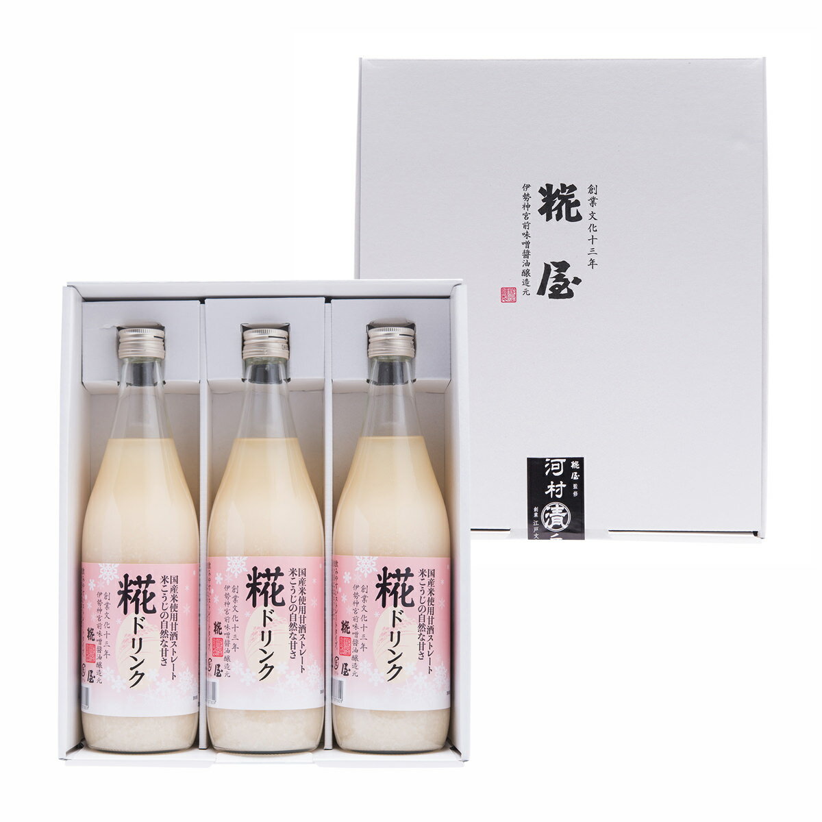 甘酒 糀ドリンク 3本 詰め合わせ 砂糖不使用 無添加 健康ドリンク 飲料 伊勢 糀屋 三重県 発酵食品 麹 米麹 米糀 あまざけ あま酒 無加糖 栄養満点 三重県産コシヒカリ 発酵飲料