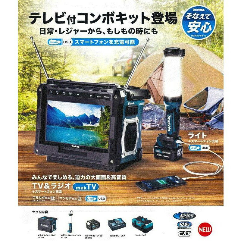 マキタ makita 災害用 TVコンボキット CK1010 ラジオ付きテレビ TV100 LEDワークライト ML104 バッテリ BL1040B 充電器 DC10SA 0088381899208