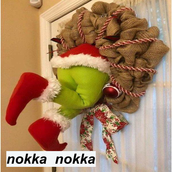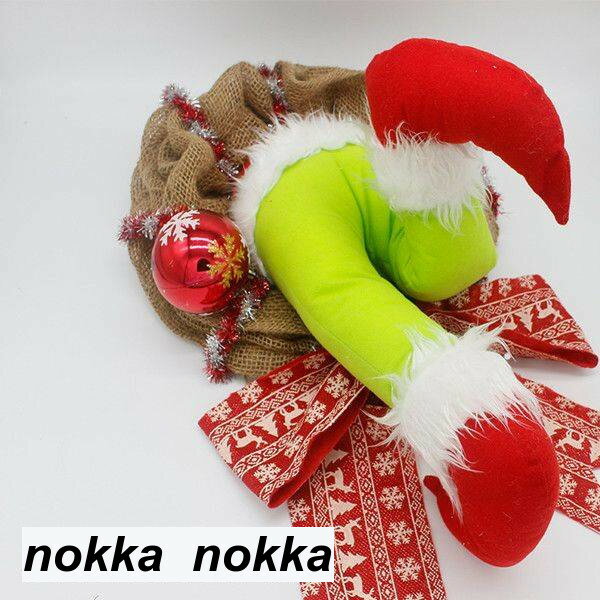 クリスマス 花輪 面白い クリスマスリースを盗む サンタクロースに変装 クリスマス泥棒リース クリスマス 飾り 脚の姿調節可能 黄麻布 吊り紐 ちょう結び 2つの大きなクリスマスボール付き クリスマスツリー 壁 窓 部屋 飾り付