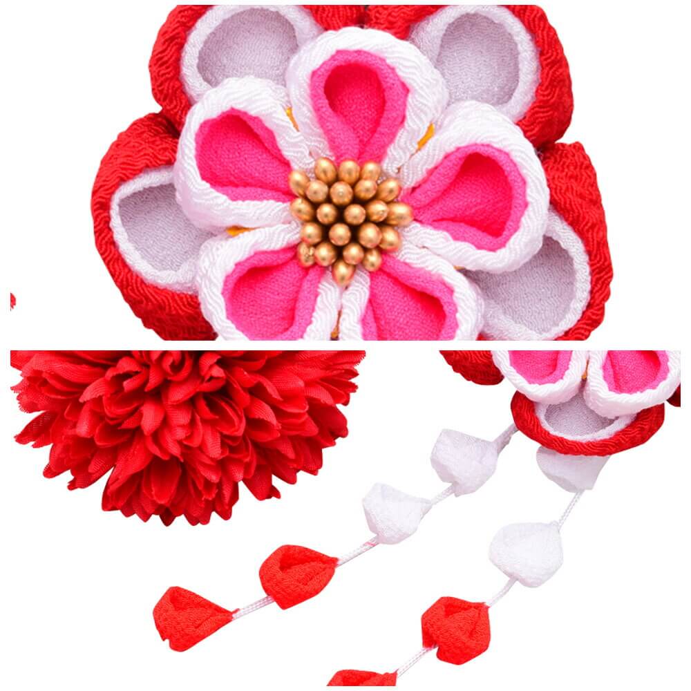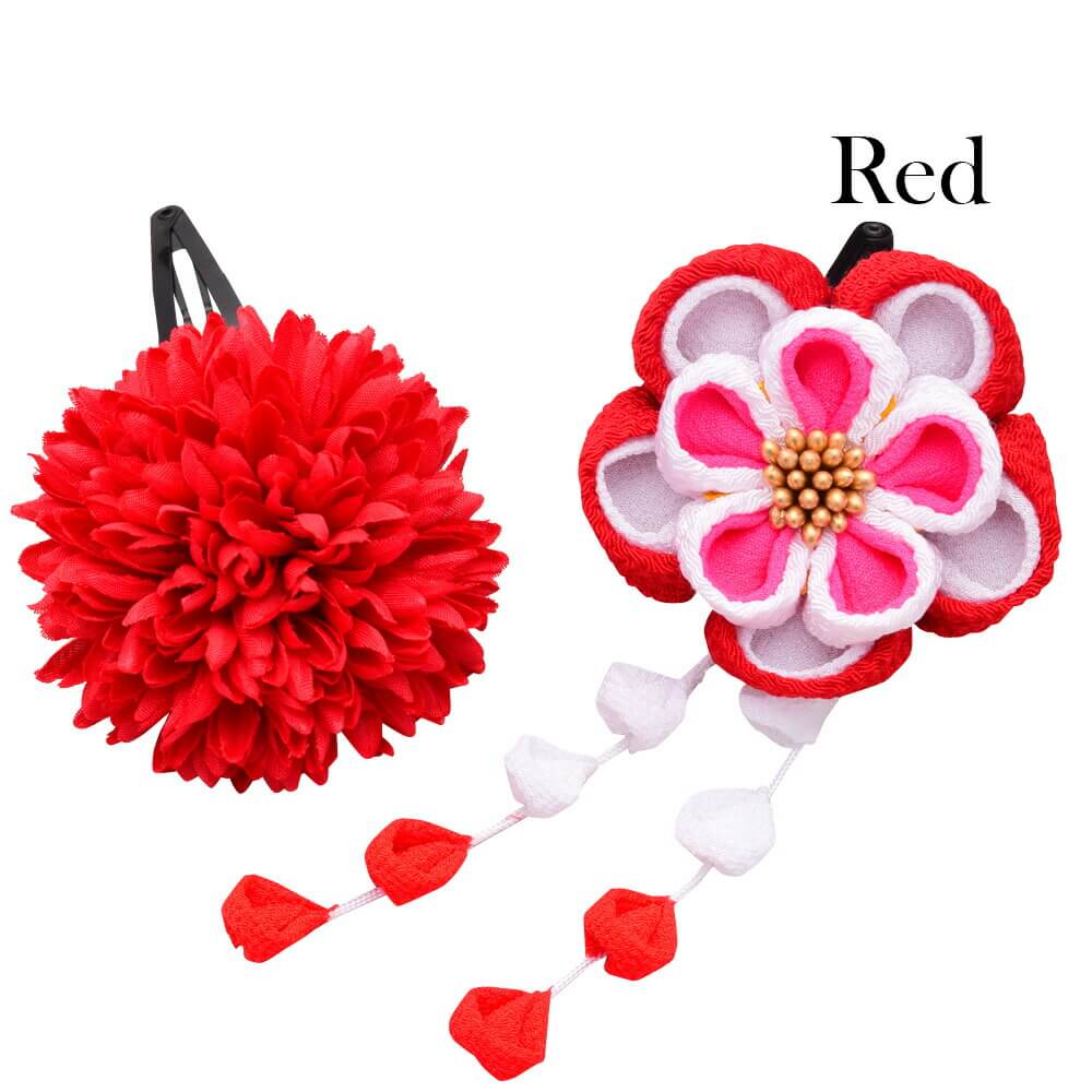 七五三 髪飾り 3歳 7歳 かみかざり パッチンピン 2点セット ちりめん つまみ細工 ぶら飾り 花かんざし 髪留め 卒業式