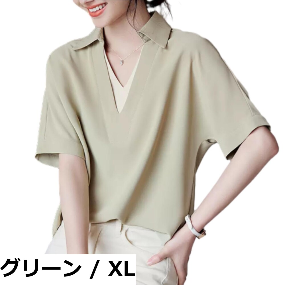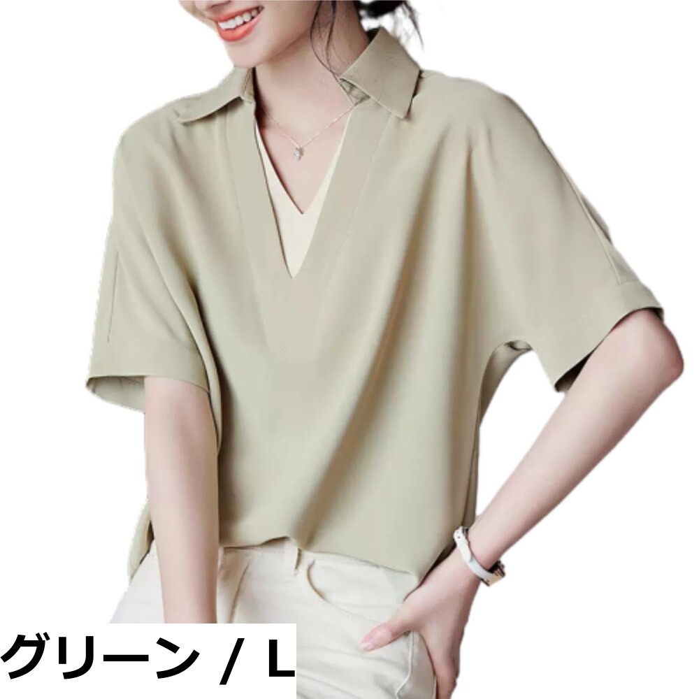 【送料無料】[MSFQSNB] Vネック 半袖 ブラウス シャツ レディース トップス tシャツ プルオーバー 大きいサイズ ゆったり 体型カバー 薄手 無地 サマー 5分袖 ファッション カジュアル オフィス 通勤 春 夏