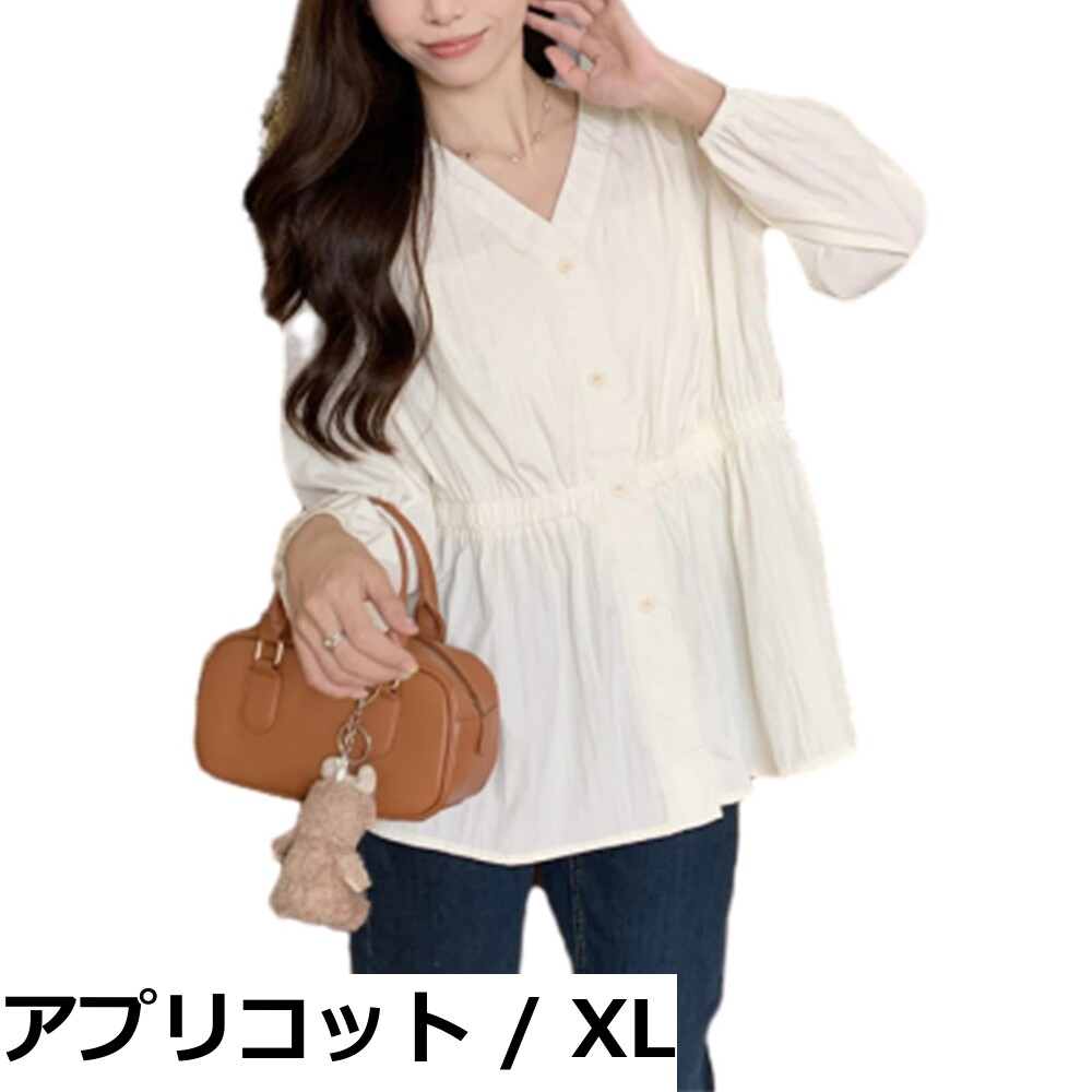 【送料無料】[Boretipseo] シャツ レディース トップス 前開き 長袖 ブラウス Vネック タック 無地 オフィス おしゃれ 大きいサイズ 着痩せ 体型カバー ゆったり 普段着 通勤 秋 冬 春