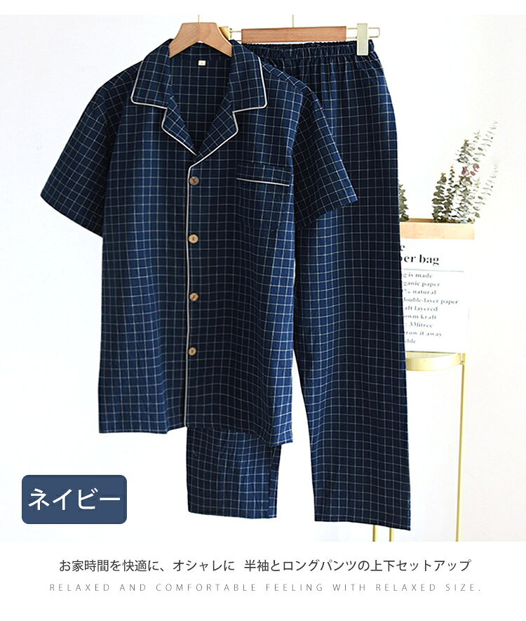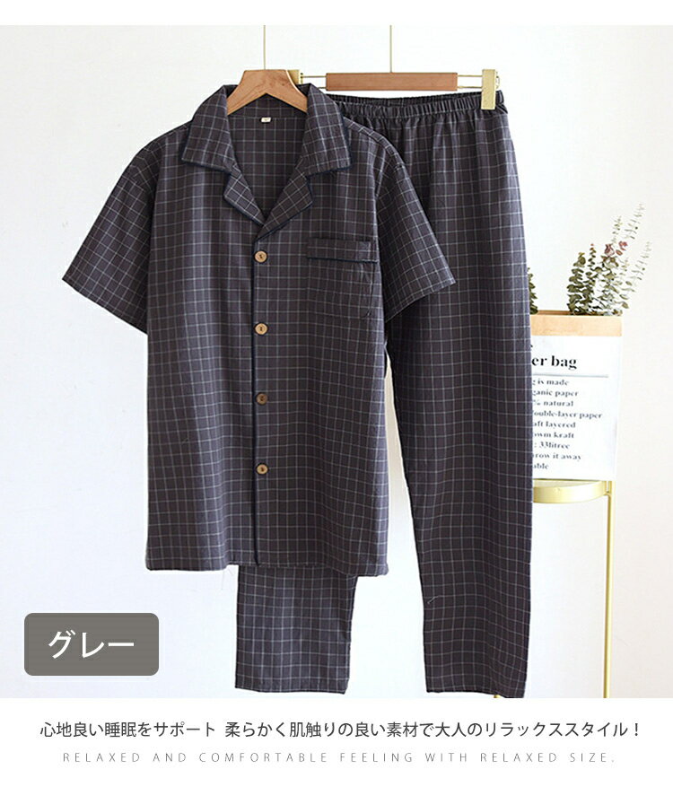 ルームウェア メンズ 上下セット コットン 半袖部屋着 夏 寝巻き パジャマ 男の子 前開き 柔らかい チェック柄 父の日 冷房着 丸洗い ウェスゴム 入院 カジュアル 上下セット通気 大きいサイズ 伸縮性良し シンプル 速乾 吸湿 部屋着 無地 涼しい 薄手 送料無料
