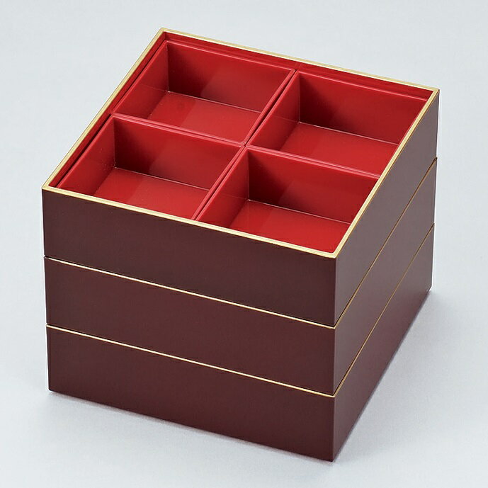 山中塗 5.0 三段角重 溜渕金塗(中子付)【重箱 じゅうばこ お正月 迎春 おせち お節】【お花見 運動会 ピクニック 行楽】【日本製】【Made in Japan】【春の行楽】【秋の行楽】