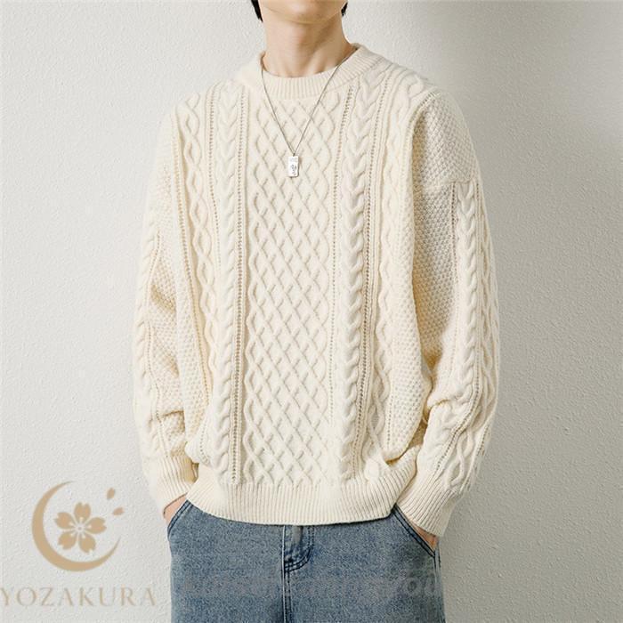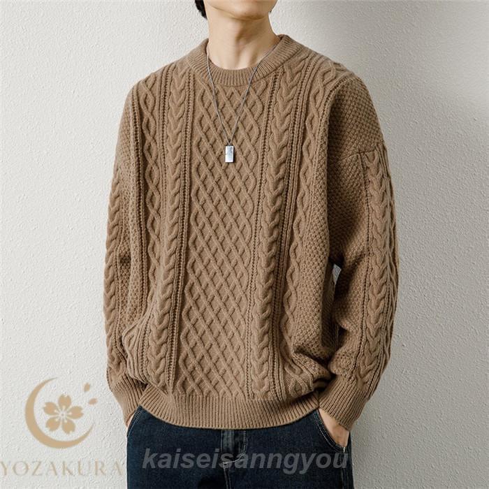 ニット メンズ セーター クルーネック ケーブル編み 長袖 ユニセックス ストレッチ ニットセーター 厚手 秋服 冬服 カジュアル 無地