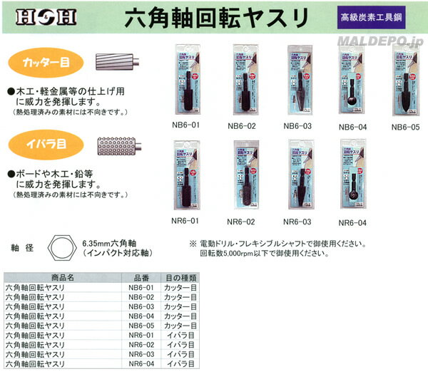 NB6-05 六角軸 回転ヤスリ カッター目 三共コーポレーション