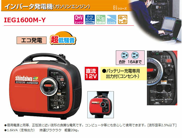 インバーターガソリンエンジン発電機 IEG1600M-Y やまびこ(新ダイワ工業)