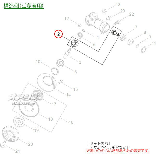 やまびこ ベベルギアセットA(ギアケース内の傘歯車) 共立(kioritz) 肩掛式刈払機 SRE2431UHT/SRE2431UHT15用【メール便可】やまびこ ベベルギアセットA(ギアケース内の傘歯車) 共立(kioritz) 肩掛式刈払機 SRE2431UHT/SRE2431UHT15用【メール便可】やまびこ(YAMABIKO)の下記ブランド 刈払機のギアケース用 ベベルギアセット(ギアケース内の傘歯車)です。ご自身で機体整備のできる方向けの商品です。こちらの商品の返品・交換はお受けできませんのでご了承願います。 下記機種用のメーカー純正品もしくは純正互換品です。(他社製を含めた)他機種への適合可否等についてはお答えできませんのでご了承ください。■適合機種: 新ダイワ 背負式 エンジン刈払機 下記シリーズ RK2026-BW/RK2026-PC/RK2026-PC20/ RK2026-PT/RK2026-PT20/RK2026SS-PT/ RK2030-PC/RK2030-PT/ RK3026-BW/RK3026-PT/RK3026-PT20/RK3026SS-PT/ RK3032-PT/■適合機種: 新ダイワ 肩掛式 エンジン刈払機 下記シリーズ RA1026-2T/RA1026-GT/RA1026-GT15/ RA1026-PT/RA1026-PT15/RA1026-UT/RA1026-UT15/ RA2026-GB/RA2026-GT/RA2026-PB/RA2026-PT/ RA2026-UB/RA2026-UT/ RA3026-GT/RA3026-PT/RA3026-UT/ RA3126-GT/RA3126-PT/RA3126-UT/ SSR262-2BY/SSR262-2TY/SSR262-PBY■適合機種: 共立 背負式 エンジン刈払機 下記シリーズ RM230A/ RMA231/ RMA261/ RMA2610/RMA2611/RMA2611LC/ RMA315/ RMA3150/RMA3150LC/ RMC260A/ RMC315/ RMC360/ RME26/RME26LC/ RME260/RME260-15/RME260-A/ RME2600/RME2600-15/RME2600B/RME2600B-15/RME2600LC/ RME260B/RME260B-15/RME260B-A/RME260BL/RME260L/ RME2620BW/RME2620BW-15/ RME2620LC/RME2620LC-15/RME2620LT/RME2620LT-15/ RME2630BW/RME2630BW-20/RME2630LT/RME2630LT-20/ RME3000BW/RME3000LC/RME3000LT/ RME315/RME315B/ RME3150/RME3150B/RME3150LT/ RME3200LT/ RME360/ RME3600/RME3600LC/RME3600LT/ RMS2620LT/ RMS2630LT■適合機種: 共立 肩掛式 エンジン刈払機 下記シリーズ SBE260U/SBE260UT/SBE260GT/ SRC260F/SRC260G/SRC260GT/SRC260L/SRC260SL-U/ SRC260U/SRC260UT/ SRE2310GH/SRE2310LH/SRE2310UH/SRE2310UHR/ SRE2310GHT/SRE2310LHT/SRE2310UHT/ SRE2320GH/SRE2320GHT/SRE2320GHTA/SRE2320GHTA-15/ SRE2320LH/SRE2320LHT/ SRE2320LHTA/SRE2320LHTA-15/SRE2320LHTA-30/ SRE2320UH/SRE2320UHR/SRE2320UHSA/ SRE2320UHT/SRE2320UHTA/SRE2320UHTA-15/SRE2320UHWA/ SRE235G/SRE235L/SRE235U/SRE235G2/SRE235LG/SRE235UG/ SRE23G2/SRE23LG/SRE23UG/ SRE2420GHTA/SRE2420GHTA-15/ SRE2420LHTA/SRE2420LHTA-15/SRE2420LHTA-30/ SRE2420UHSA/SRE2420UHTA/SRE2420UHTA-15/SRE2420UHWA/ SRE2430GHT/SRE2430GHT15/ SRE2430LHT/SRE2430LHT15/SRE2430LHT30/ SRE2430UHS/SRE2430UHT/SRE2430UHT15/ SRE2431GHT/SRE2431GHT15/ SRE2431LHT/SRE2431LHT15/SRE2431LHT30/ SRE2431UHT/SRE2431UHT15/ SRE2600G/SRE2600L/SRE2600U/ SRE2600G-15/SRE2600L-15/SRE2600U-15/ SRE2600SL-L/SRE2600SL-U/SRE2600SL-UT/ SRE260G/SRE260G-15/SRE260L/SRE260L-15/SRE260LL/ SRE260P-A/SRE260PG/SRE260PGT/SRE260PGT-15/ SRE260PH/SRE260PHG/SRE260PT/ SRE260SL-L/SRE260SL-U/SRE260U/SRE260U-15/ SRE2610G/SRE2610G-15/SRE2610GH/SRE2610GHT/ SRE2610L/SRE2610L-15/SRE2610L-30/SRE2610LH/SRE2610LHT/ SRE2610U/SRE2610U-15/SRE2610UH/SRE2610UHR/SRE2610UHT/ SRE261G/SRE261L/SRE261U/ SRE261G-15/SRE261L-15/SRE261U-15/SRE261L-30/ SRE261P/SRE261PT/SRE261PU/SRE261PG/SRE261PGT/ SRE261PG-15/SRE261PU-15/ SRE2620G/SRE2620G-15/SRE2620GH/SRE2620GHT/ SRE2620GHTA-15/SRE2620GT/ SRE2620L/SRE2620L-15/SRE2620L-30/SRE2620LH/SRE2620LHT/ SRE2620LHTA-15/SRE2620LHTA-30/SRE2620LT/ SRE2620U/SRE2620U-15/SRE2620UH/SRE2620UHR/SRE2620UHS/ SRE2620UHT/SRE2620UHTA-15/SRE2620UHW/SRE2620UT/ SRE2650G2/SRE2650LG/SRE2650UG/ SRE2655G2/SRE2655G2T/SRE2655LG/SRE2655LGT/ SRE2655UG/SRE2655UGT/ SRE265G2/SRE265LG/SRE265UG/SRE265MSP/ SRE265NG2/SRE265NLG/SRE265NUG/SRE265U/ SRE26G2/SRE26LG/SRE26UG/ SRE2720GHT/SRE2720GHTA-15/SRE2720GT/ SRE2720LHT/SRE2720LHTA-15/SRE2720LHTA-30/SRE2720LT/ SRE2720UHS/SRE2720UHS-SB/SRE2720UHT/SRE2720UHT-SB/ SRE2720UHTA-15/SRE2720UHTA15-SB/SRE2720UHW/ SRE2720UT/SRE2720UT-SB/ SRE2730GT/SRE2730LHT30/SRE2730LT/SRE2730UT/ SRE2730P-GHT/SRE2730P-GHT15/SRE2730P-LHT/SRE2730P-LHT15/ SRE2730P-UHS/SRE2730P-UHT/SRE2730P-UHT15/ SRE2731GT/SRE2731LHT30/SRE2731LT/SRE2731UT/ SRE2731P-GHT/SRE2731P-GHT15/SRE2731P-LHT/SRE2731P-LHT15/ SRE2731P-UHS/SRE2731P-UHT/SRE2731P-UHT15/ SRE3200LHT/SRE3200UHS/SRE3200UHT/ SRG2610G/SRG2610G-15/SRG2610GH/SRG2610GHT/ SRG2610L/SRG2610L-15/SRG2610LH/SRG2610LHT/ SRG2610U/SRG2610U-15/SRG2610UH/SRG2610UHR/ SRG2610UHT/SRG2610UT/ SRM2610UH/ SRM261P/SRM261PT/SRM261PU/SRM261PG/SRM261PGT/SRM265U■適合機種: 共立 背負式 エンジン刈払機 下記シリーズ ATR250GK/ATR251GL/ATR251TGL■適合機種: エコー バッテリー刈払機 下記シリーズ BSR510L/BSR510U※メーカー取寄品のため、欠品時には申し訳ございませんが 納期にお時間を頂く、もしくはキャンセルとさせて頂く場合がありますので御了承下さい。※商品改良のため、仕様・外観など予告なく変更する場合があります。 また画像と商品の色が若干異なる場合がありますのであらかじめ御了承下さい。注文について注意事項メーカー(提携先)からのお取り寄せ商品となります。稀ではございますが欠品時は変動する場合もございますので、正確な納期はご注文の確認メールにてご案内させていただきます。