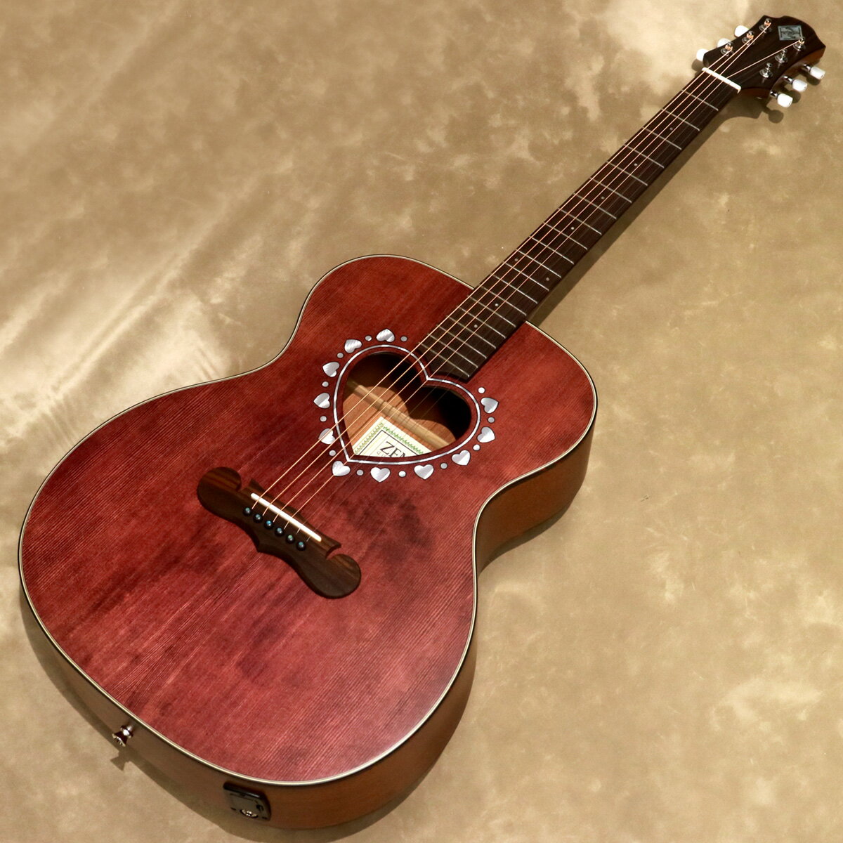 ゼマイティス・アコースティックのオーケストラ・サイズ、アンダーサドル・ピックアップを搭載したエレクトリック・アコースティック・モデルCAF-90Hに、パープル・カラーが登場しました。 それぞれアバロン柄とマザー・オブ・パール柄のロゼッタをラインナップしています。 CAF-90Hは、マザー・オブ・パールのダイヤモンド・インレイが輝く特徴的なヘッドストックを持ったマホガニー・ネックに、ローズウッド・フィンガーボードを採用した20フレット仕様の14フレット・ジョイントとなっています。 ゼマイティスの伝統的なハート型のサウンドホール、その周縁に施されたハートをちりばめたロゼッタ、マスターシュ・ブリッジのオリジナル・デザインは、非常に魅力的です。 トップ・ブレイシングはサウンドホールの形状やボディーのサイズを考慮して、最大限の鳴りを引き出すためにフォワードXブレイシングを採用しています。 ボディー・トップは板材の時に真空状態で熱を加えることで余分な水分やミネラルを取り除いたソリッド・スプルースを使用し、サイドとバックにはサペリを用いて狂いの出にくい安定したボディー剛性を実現しました。 ヘッドストックの突板にはローズウッドを使用し、ペグのボタンはパーロイドを採用しています。 ボディー・サイドには4バンドEQとクロマティック・チューナー機能を持ったプリアンプを搭載し、お好みのトーンでアンプなどの外部機器に出力できます。 ●アンダーサドル・ピエゾ・ピックアップからのサウンドをコントロールするプリアンプ・システム。コントロールはVolume、Treble、Middle、Bass、Presence。便利なチューナー機能も装備。9Vバッテリーを使用。 ●サウンドに広がりを与えるハート形状のサウンドホールと、ハートとドットが交互にちりばめられたアバロン柄のロゼッタ。 ●その形状から、英語で口ひげを意味する「マスターシュ」と命名されたブリッジ。 ●付属ギグバッグは、大きな前面ポケット付き。 ダブル・ショルダー・ストラップ でバックパック・スタイルでの運搬が可能。 ■Top: Solid Spruce ■Back & Sides: Laminated Sapele ■Bracing: Forward X ■Neck: Mahogany ■Nut Width: 43mm ■Fingerboard & Bridge: Rosewood ■Fretboard Radius: 400mm ■Nut & Saddle: Bone ■Scale Length: 630mm ■Frets: 20 ■Headstock Veneer: Rosewood ■Finish: Satin Urethane ■Body Length: 490mm ■Body Width (Upper Bout): 282mm ■Body Width (LowerBout): 392mm ■Body Depth (Upper): 96mm ■Body Depth (Lower): 108mm ■Preamp: EX-4 with Zemaitis Logo ■Strings: .012 / .016 / .024 / .032 /.042 / .053 [Coated Phosphor Bronze] ■Case: Gigbag ■Weight: 約2.15kg