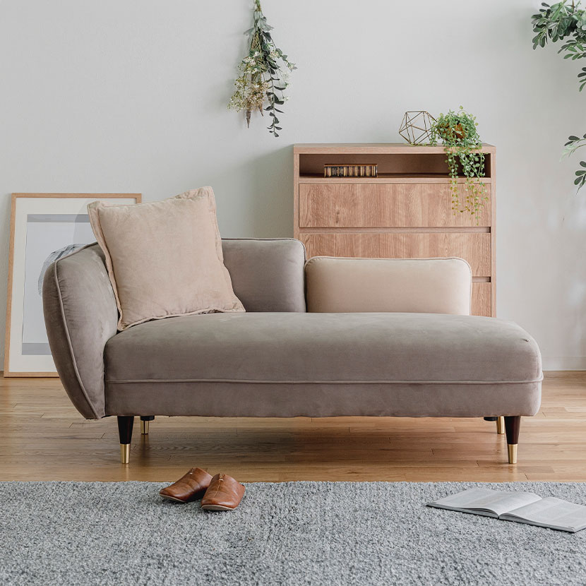 ソファ 2人掛け ベルベッド クッション付き シェーズロング 長椅子 コンパクト 一人暮らし ロータイプ くすみカラー 韓国インテリア 幅1560×奥行790×高さ660mm ●高級感漂うソファ美しい光沢で高級感を演出するベルベット生地のシェーズロングソファです。●ベルベットの高級感ある張地ベルベット生地は細かな起毛が生み出す美しい光沢となめらかな肌触りが特徴です。●ローソファとしても脚部を取り外してローソファとしても使用可能。圧迫感が軽減され、空間が広く使えます。●コンパクトでもくつろげる空間寝転んだり足を伸ばしたりと、コンパクトながらもゆったりとくつろぐことができます。●ゆとりのサイズ感座面の奥行は56cmと、あぐらがかけるゆったりサイズとなっています。●極上の座り心地高級ソファに使用される内部構造を再現し、硬すぎず柔らかすぎない座り心地を追求しました。●ふんわり柔らかい背もたれ背もたれはふんわり柔らかいため、優しく背中を支えてくれます。●おしゃれなクッション付き約38×38cmサイズのクッションがひとつ付属します。ひとつあるだけでソファでの過ごし方がぐっと快適に。●背面もきれいな仕上がり壁際に置くだけでなく、お部屋の真ん中に置いたり自由なレイアウトがお楽しみいただけます。●ゴールドがアクセントの取り外し可能な脚こだわりの脚が高級感とデザインの美しさをさらに引き立てます。●工具いらずで簡単取り付け脚はくるくると回すだけで簡単に取り外せるので工具は不要です。ローソファ用の脚パーツも付いています。●お掃除ロボット対応脚高25.5cmなので、一般的なお掃除ロボットにも対応しています。 商品について サイズ幅1560×奥行790×高さ660mm座面高さ / 430mm脚高さ / 255mm 重量25kg 材質張地 / ファブリック(ベルベット生地)脚 / ラバーウッド無垢中材 / Sスプリング、シリコンフィル、ウレタンフォーム、ウエービング 梱包数1 梱包サイズ幅750×奥行530×高さ1550mm 梱包重量27kg 組み立て一部組立品(脚のみ取り付け) 付属品クッション1個 備考脚取り外し可能脚裏 / 床傷防止材付き 配送について お届け日についてお届け日確認のため、配送会社よりお電話またはショートメールにてご連絡いたします。※配送地域によっては曜日が限定される場合がございます。 お届け時間について時間指定(午前・午後を含む)を承ることはできません。お届け時間は、お届け日当日午前中までに改めて配送会社よりご連絡いたします。 配送費用について配送費無料※北海道は1個あたり別途送料5500円(税込)※沖縄・離島は別途送料お見積り 階上げについてエレベーターがない場合、もしくはエレベーターに商品が入らない場合は、2階まで無料。3階以上は1商品毎につき2200円(税込)頂戴いたします。 再配送について配送時のお客様不在による持ち帰りが発生した場合、別途配達費用、商品保管費用を頂戴いたします。※手数料11000円(税込) 備考こちらの商品は軒先渡し(玄関先へのお届け)となります。 ご注意大型商品のため、梱包サイズ、搬入経路のご確認をお願いいたします。