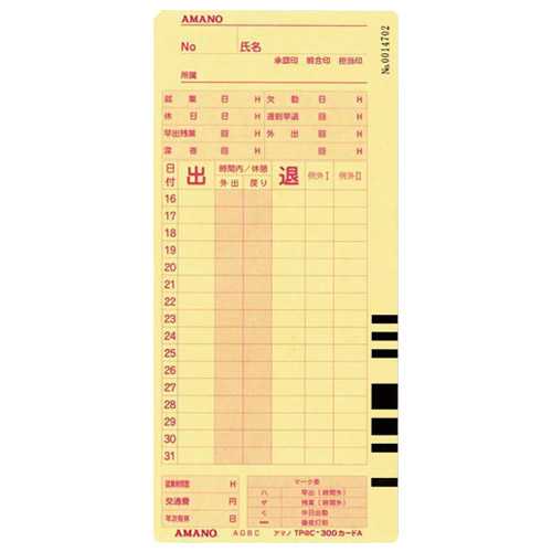 【J-295344】【アマノ】タイムカード Pro P@CKカード A【タイムレコーダー】