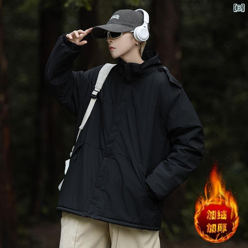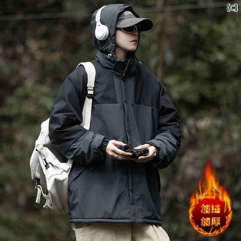 マウンテンパーカー メンズ 男性用 秋冬 防風 防水 ジャケット 裏起毛 厚手 アウター 綿服 アウトドア 登山 釣り スキー ウェア 米白 黒 灰色 カーキ