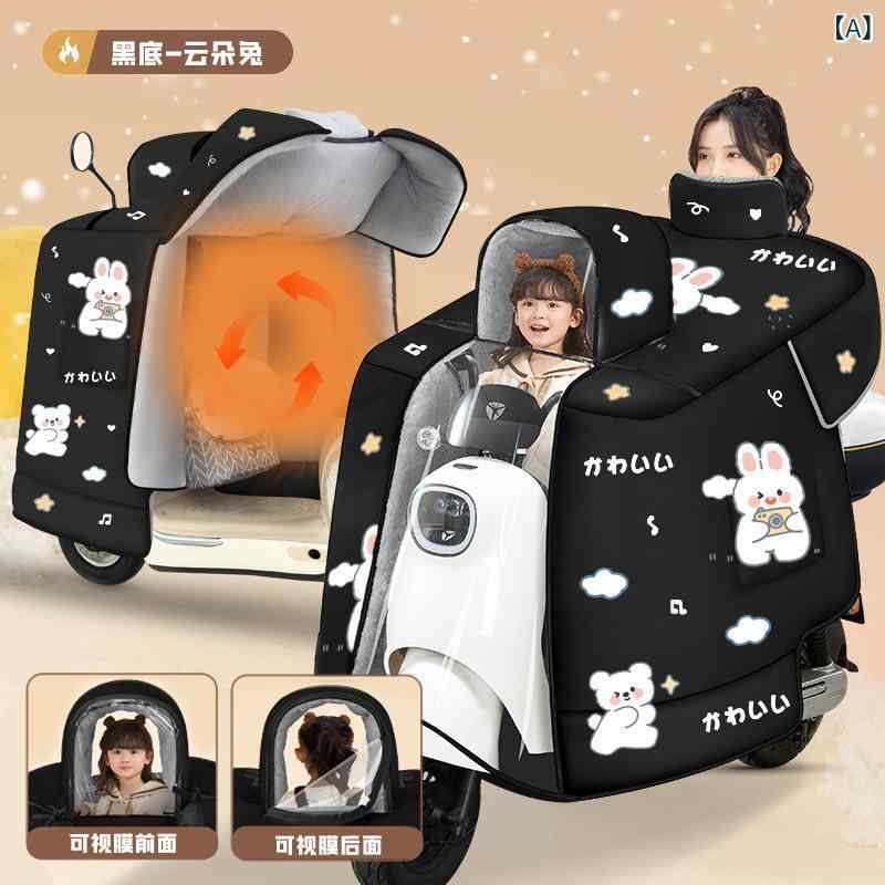 バイク用防寒着 キッズ 子供用 バイク 防風 カバー ひざ掛け 厚手 裏起毛 スクーター 前掛け 幼児 親子 ペアルック 黒 うさぎ 小熊 花柄 防水
