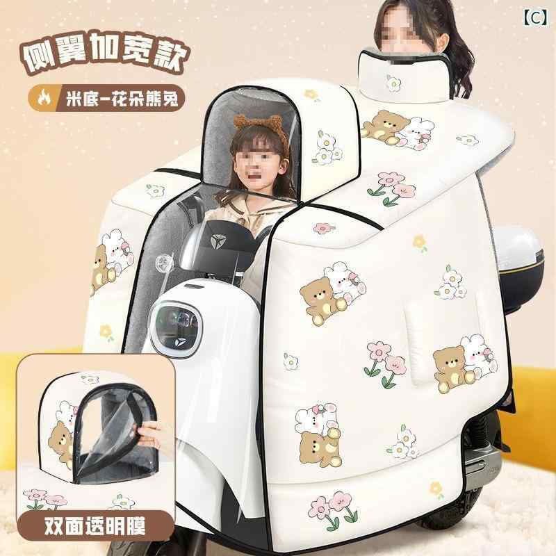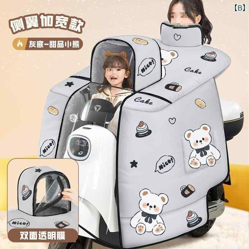 バイク用防寒着 親子 子供用 スクーター 厚手 裏起毛 防風 カバー ケープ ミトン付き ポリエステル ベージュ グレー ラッキーアイテム