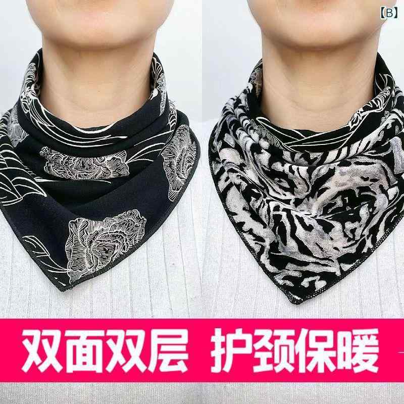 マフラー レディース 秋冬 ショール ウール コットン 両面プリント 三角巾 韓国 ファッション あったか 防寒 レトロ 金華 梅 花 千鳥格子 植物 花柄 50cm