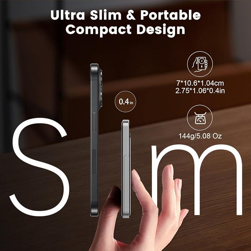 スマホスタンド&カードカース付き モバイル バッテリー MagSafe対応 軽量 小型 マグセーフ充電器 2台同時充電可能 5000mAh 薄型 コンパクト マグネット ワイヤレス充電器 PD20W USB-c急速充電 (グレー)