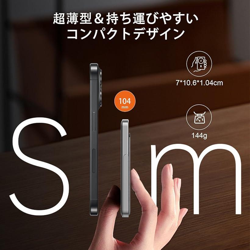 モバイル バッテリー 薄型 マグネット式 モバイルバッテリー 5000mAh PD20W ワイヤレス 出力 15W for Android/7.5W iPhone/USB-C PD20W出入力/PSE認証済 LED残量表示(ブルー)