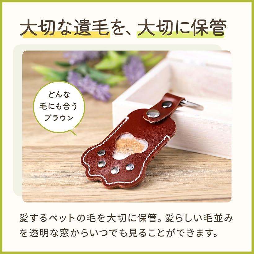 ペット 遺毛入れ 思い出を連れて行こう。 ケース キーリング キーホルダーストラップ メモリアル 本革 お守りケース 猫 ひげ ペット仏壇 ペット仏具 遺骨 遺骨ペンダント(ブラウン)