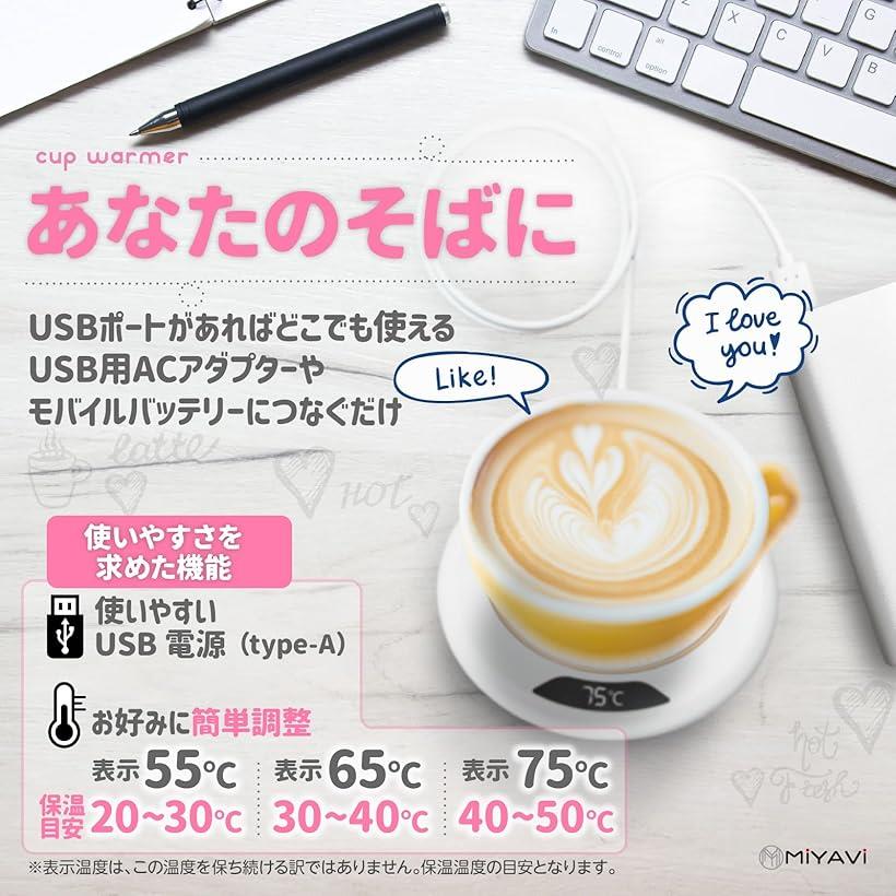 バリエーションコード : 2b9v8sj19k商品コード2b9v8vsfkx商品名カップウォーマー コーヒーウォーマー 保温コースター USB 55℃~75℃3段階切り替え 8時間自動電源オフ機能ブランドMY MiYAViカラーグリーン「はじめに」この商品はUSBタイプのため、飲み物を熱々の状態にするものではく、ほどほどの温度にキープするためにご利用下さい。カップの材質、室温、量によっては温度が上がりきらない場合がございます。またアダプターの電力不足により効果を発揮できていない場合もございます。下記の点と合わせてご了承いただける場合にお買い求めをお願いいたします。USBタイプで定格電力20Wのため、一定の温度を保つためには、5V/2.0A以上の出力ができるアダプターとセットでお使い下さい。W数の少ないアダプターでのタコ足接続や、パソコンUSBなどの給電は電力が足りずに保温性能を引き出せない場合があります。モバイルバッテリーも同様です。ボタンで55℃、65℃、75℃の3段階の温度設定ができます。こちらはあくまでウォーマーの設定温度であり、飲み物の温度を設定どおりに保ち続ける訳ではありません。飲み物、カップ、外気温による熱平衡のため、徐々に温度は下がり、平衡になる温度で止まります。熱々にはなりません。ガラス、紙容器、プラスチック、セラミック、ホーロー、シングルタイプのステンレスマグなどに対応しています。いずれにしても底面全体で温めるため、カップの形状が平たくない場合や窪みがある場合は温まりにくいことがあります。缶飲料は熱伝導性は高いですが、接地面積がほとんどないので機能を活かせません。*ステンレスは2重構造(真空断熱タイプ)のものは飲料に熱を伝えにくいので効果が出なくなります。必ずシングル(直火可能タイプ)をご利用下さい。その場合はカップ自体が熱くなりますので、取り扱いにはご注意下さい。※ 他ネットショップでも併売しているため、ご注文後に在庫切れとなる場合があります。予めご了承ください。※ 品薄または希少等の理由により、参考価格よりも高い価格で販売されている場合があります。ご注文の際には必ず販売価格をご確認ください。※ 沖縄県、離島または一部地域の場合、別途送料の負担をお願いする場合があります。予めご了承ください。※ お使いのモニタにより写真の色が実際の商品の色と異なる場合や、イメージに差異が生じることがあります。予めご了承ください。※ 商品の詳細(カラー・数量・サイズ 等)については、ページ内の商品説明をご確認のうえ、ご注文ください。※ モバイル版・スマホ版ページでは、お使いの端末によっては一部の情報が表示されないことがあります。すべての記載情報をご確認するには、PC版ページをご覧ください。計量、コンパクトなUSB式のコーヒーウォーマーです。コンセントタイプと違って出力が抑えられているので、冷たい水を温めるような機能はありません。また外気温や飲料の量、コップの形状にも保温機能は左右されます。75℃の設定温度でもその温度をキープするわけではなく、熱平衡により徐々に下がっていきます。